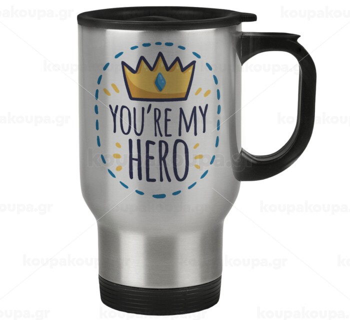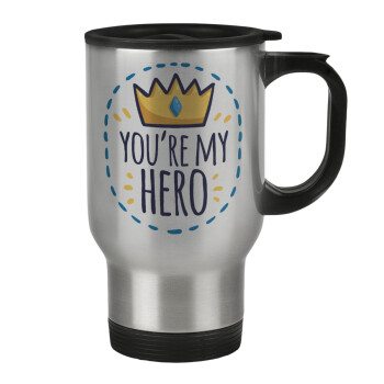 Dad, you are my hero!, Stainless steel travel mug with lid, double wall 450ml