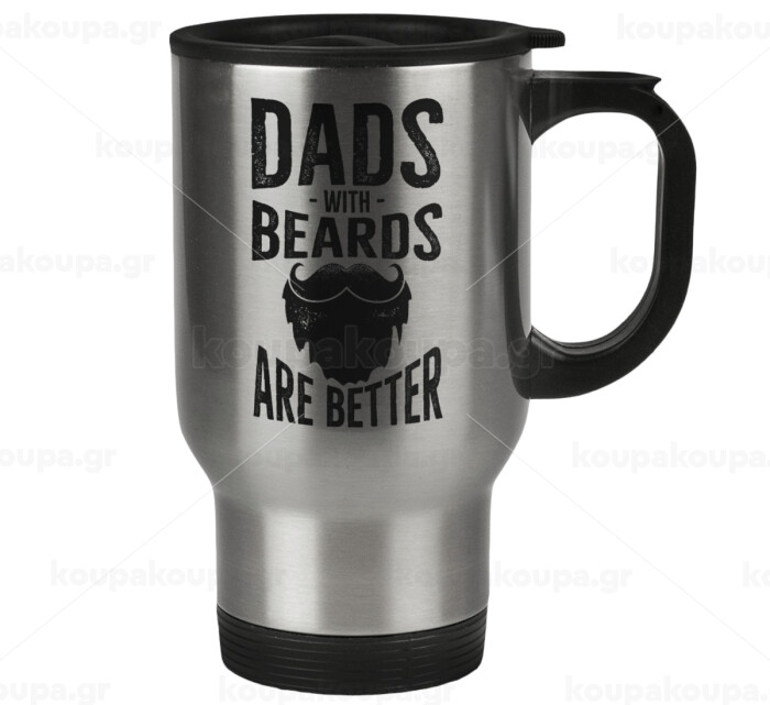 Dad's with beards are better, Stainless steel travel mug with lid, double wall 450ml