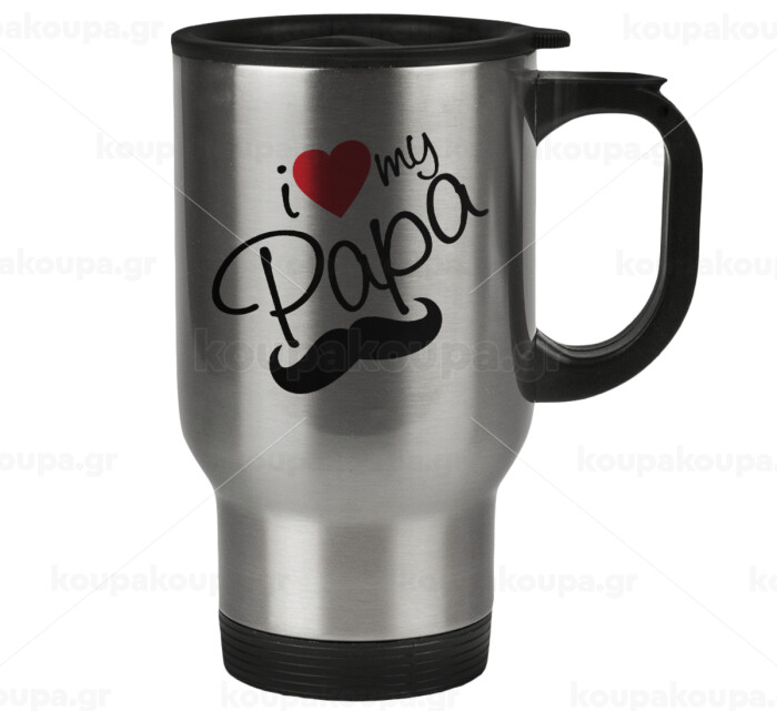 I Love my papa, Stainless steel travel mug with lid, double wall 450ml