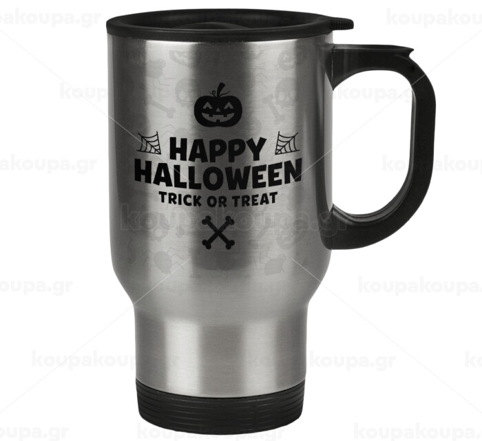 Happy Halloween pumpkin, Stainless steel travel mug with lid, double wall 450ml