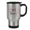 I Love you Mom pink, Stainless steel travel mug with lid, double wall 450ml