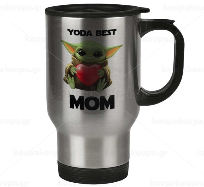 Yoda Best mom, Stainless steel travel mug with lid, double wall 450ml