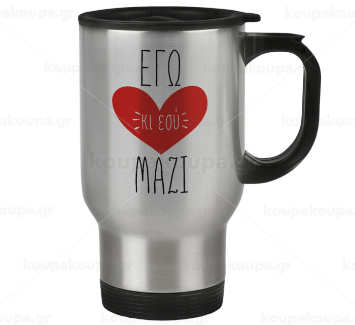 Εγώ κι εσύ μαζί!, Stainless steel travel mug with lid, double wall 450ml