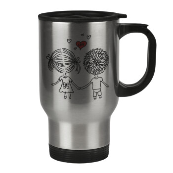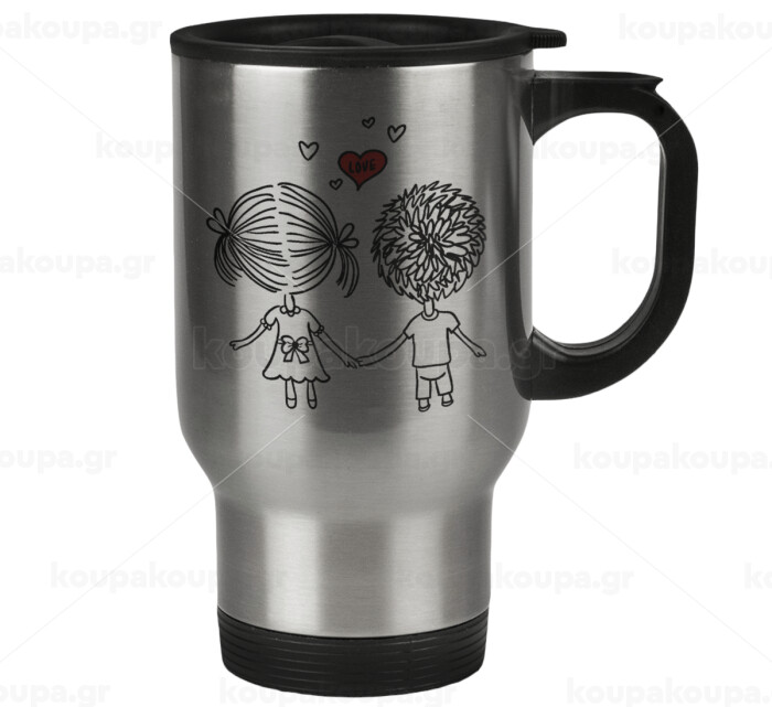 Hold my hand for ever, Stainless steel travel mug with lid, double wall 450ml