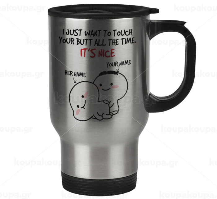 I Just Want To Touch Your Butt All The Time, Stainless steel travel mug with lid, double wall 450ml