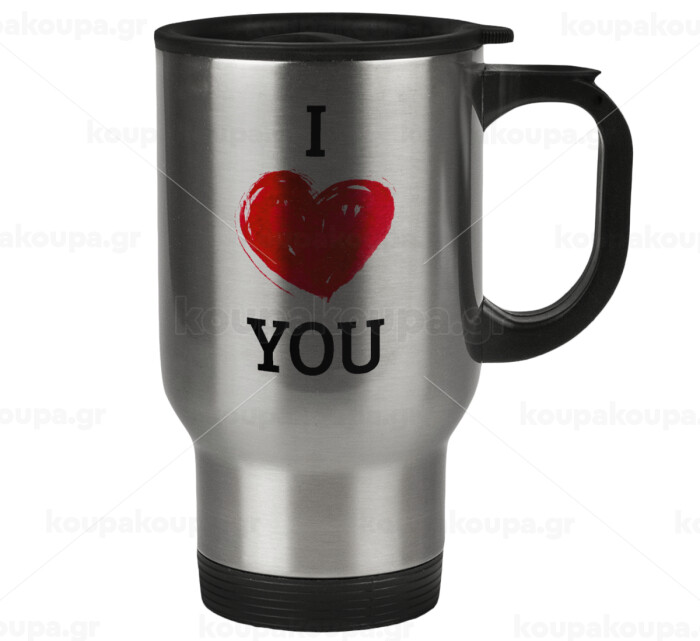I Love You, Stainless steel travel mug with lid, double wall 450ml