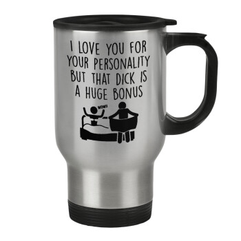 I Love You for Your Personality But that D... Is a Huge Bonus , Stainless steel travel mug with lid, double wall 450ml