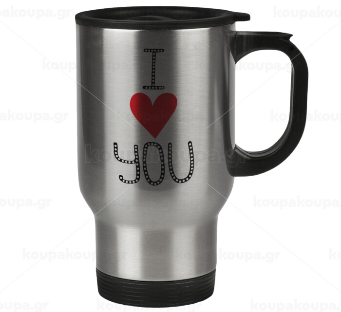 I Love You small dots, Stainless steel travel mug with lid, double wall 450ml