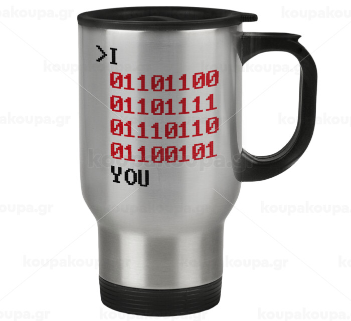 I .... YOU, binary secret MSG, Stainless steel travel mug with lid, double wall 450ml
