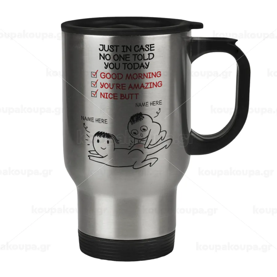 Just in case no one told you today..., Stainless steel travel mug with lid, double wall 450ml