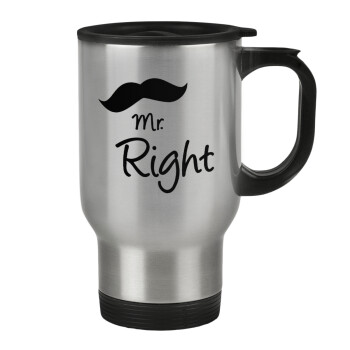 Mr right Mustache, Stainless steel travel mug with lid, double wall 450ml