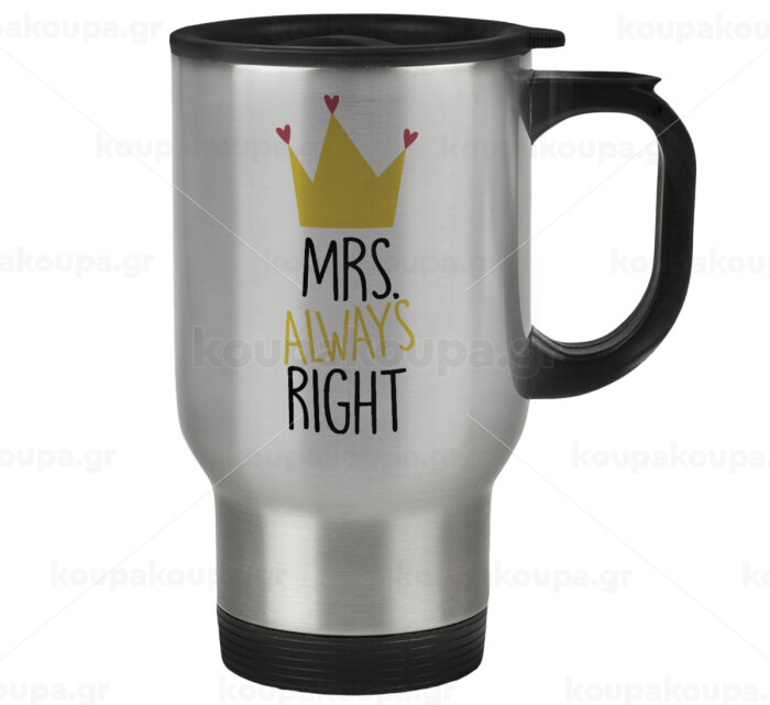 Mrs "Always" right, Stainless steel travel mug with lid, double wall 450ml