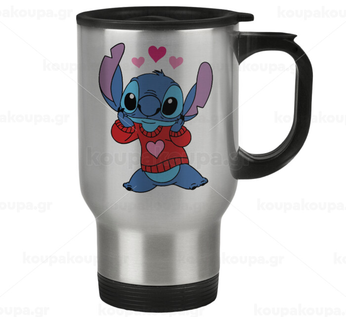 Stitch heart, Stainless steel travel mug with lid, double wall 450ml