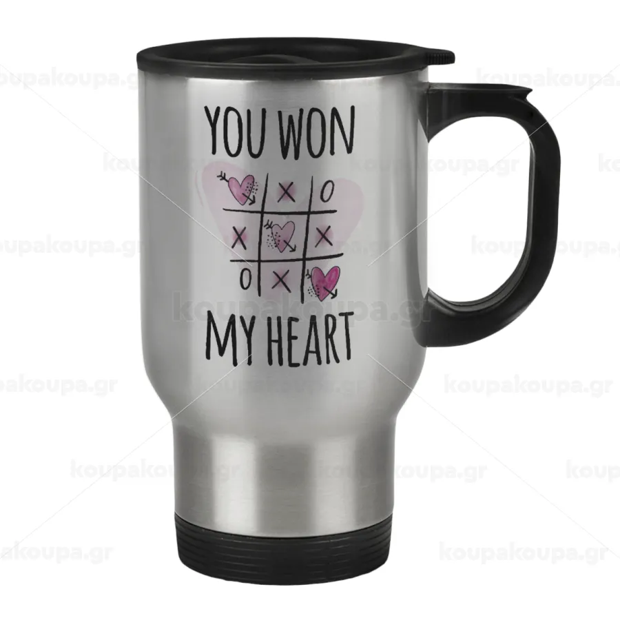 You won my heart, Stainless steel travel mug with lid, double wall 450ml