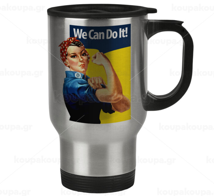 Rosie we can do it!, Stainless steel travel mug with lid, double wall 450ml