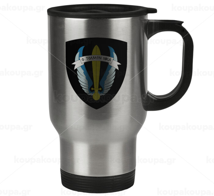 Έμβλημα Μονάδων Καταδρομών Ο Τολμων Νικα - Λοκ, Stainless steel travel mug with lid, double wall 450ml