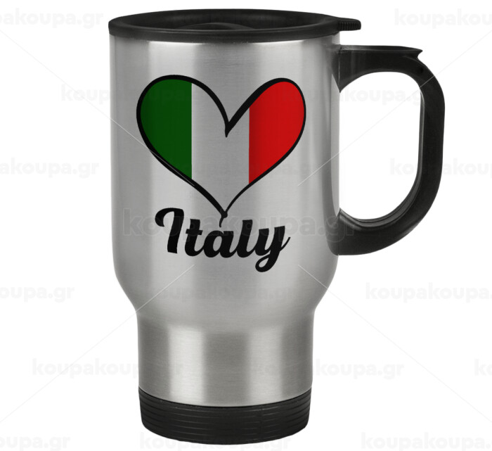 Italy flag, Stainless steel travel mug with lid, double wall 450ml