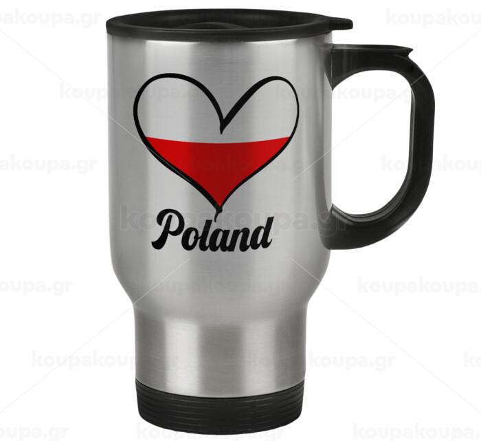 Poland flag, Stainless steel travel mug with lid, double wall 450ml