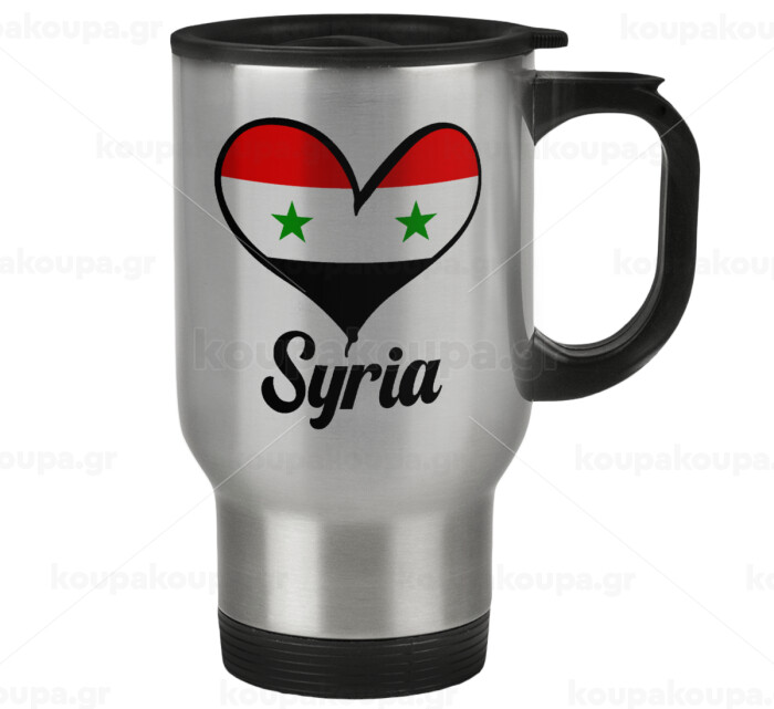 Syria flag, Stainless steel travel mug with lid, double wall 450ml
