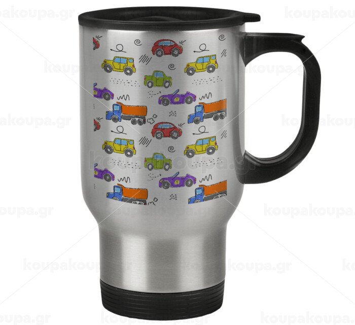 Colorful cars, Stainless steel travel mug with lid, double wall 450ml