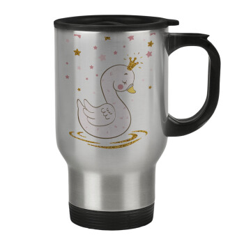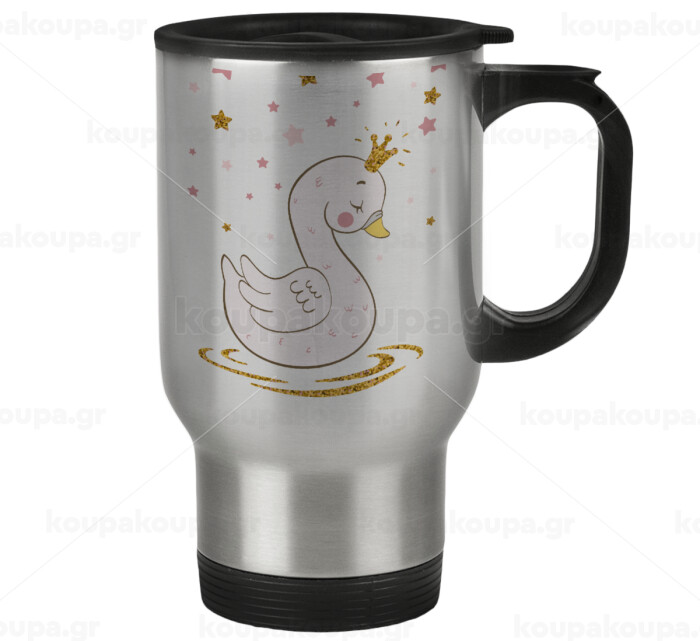 Crowned swan, Stainless steel travel mug with lid, double wall 450ml
