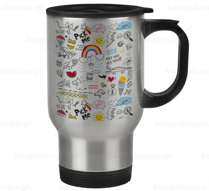 Doodle kids, Stainless steel travel mug with lid, double wall 450ml