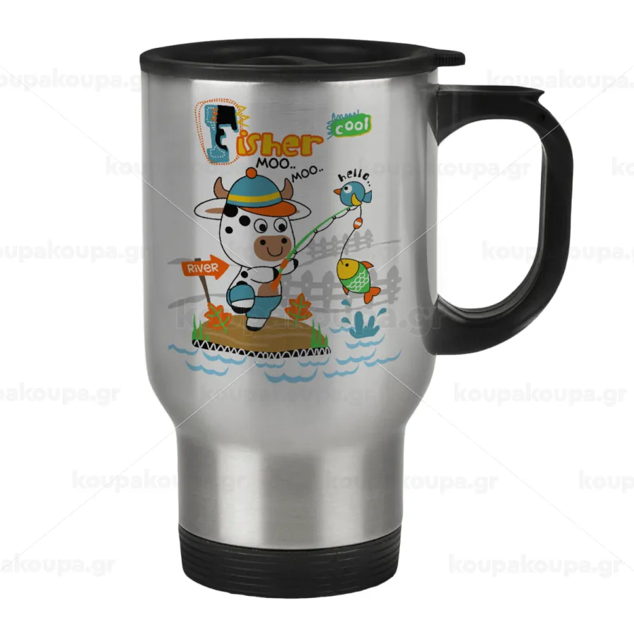 Kids Fisherman, Stainless steel travel mug with lid, double wall 450ml