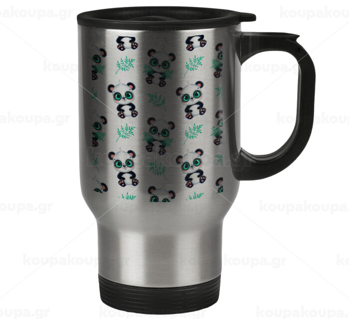 Panda, Stainless steel travel mug with lid, double wall 450ml