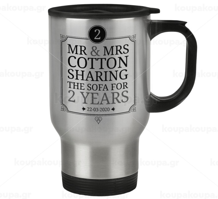 Mr & Mrs Sharing the sofa, Stainless steel travel mug with lid, double wall 450ml