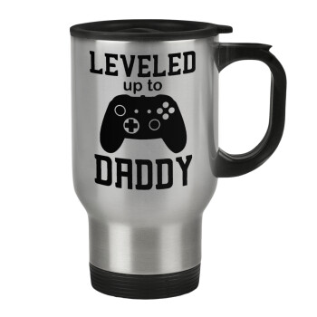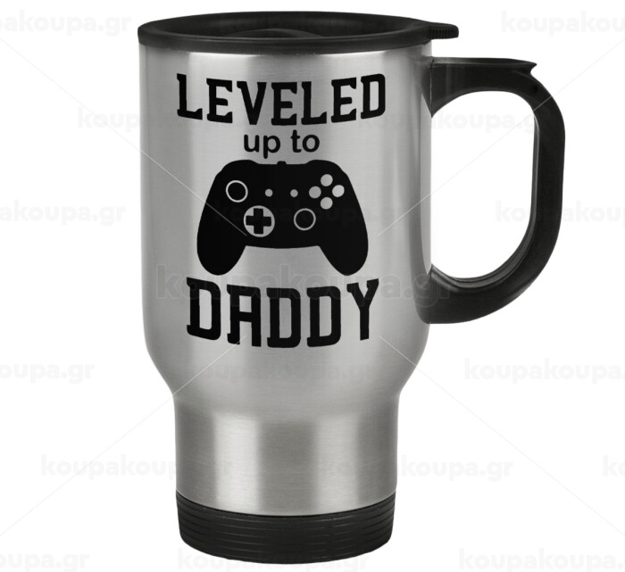 Leveled to Daddy, Stainless steel travel mug with lid, double wall 450ml