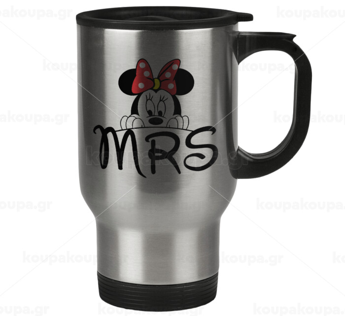 Minnie Mrs, Stainless steel travel mug with lid, double wall 450ml
