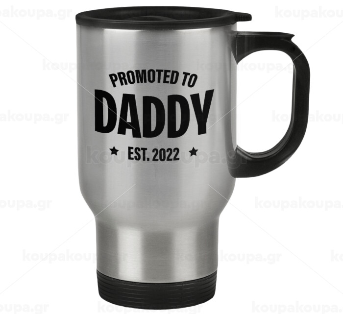 Promoted to Daddy, Stainless steel travel mug with lid, double wall 450ml