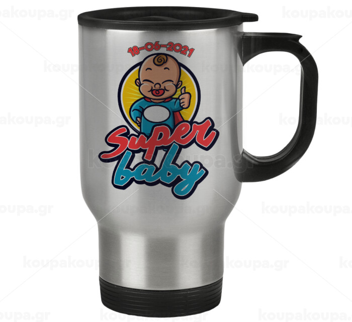 Super baby., Stainless steel travel mug with lid, double wall 450ml