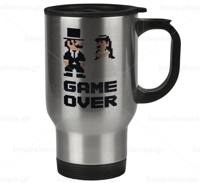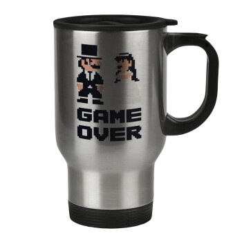 8bit Game Over Couple Wedding, Stainless steel travel mug with lid, double wall 450ml