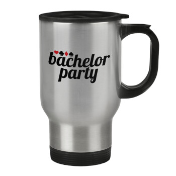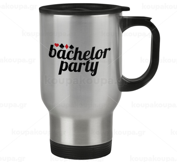 Bachelor party, Stainless steel travel mug with lid, double wall 450ml