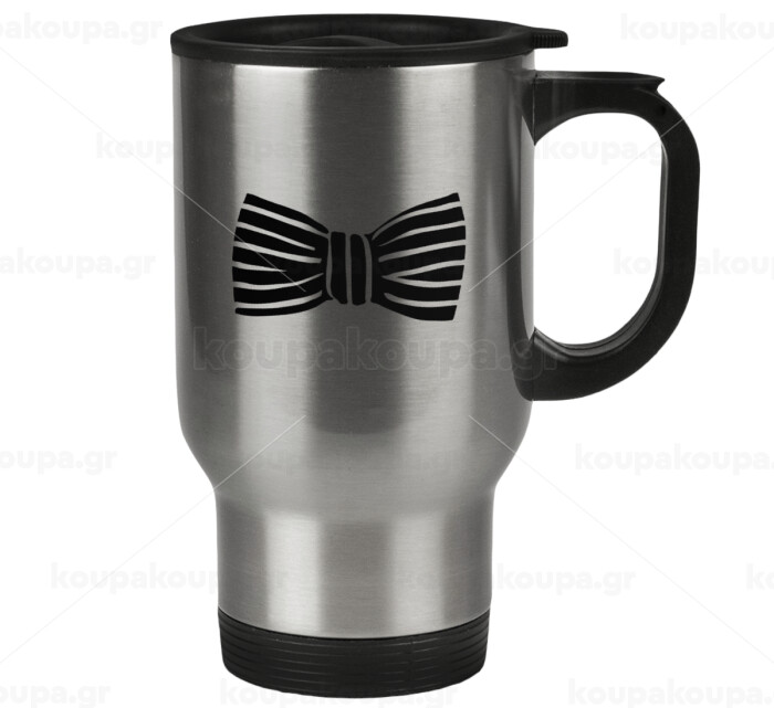 Bow tie, Stainless steel travel mug with lid, double wall 450ml