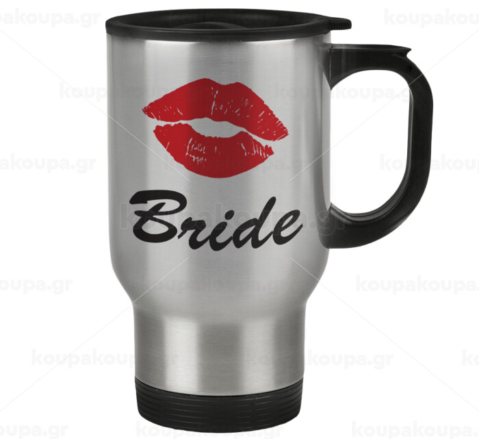 Bride kiss, Stainless steel travel mug with lid, double wall 450ml