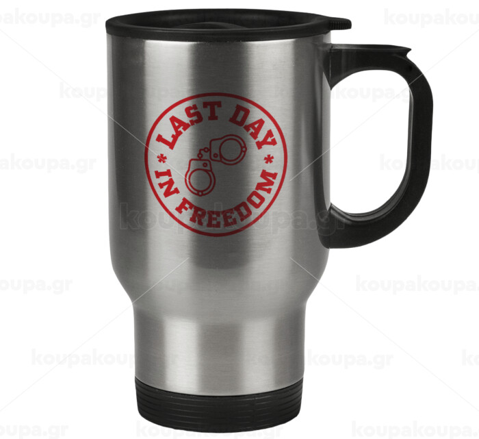Last day freedom, Stainless steel travel mug with lid, double wall 450ml