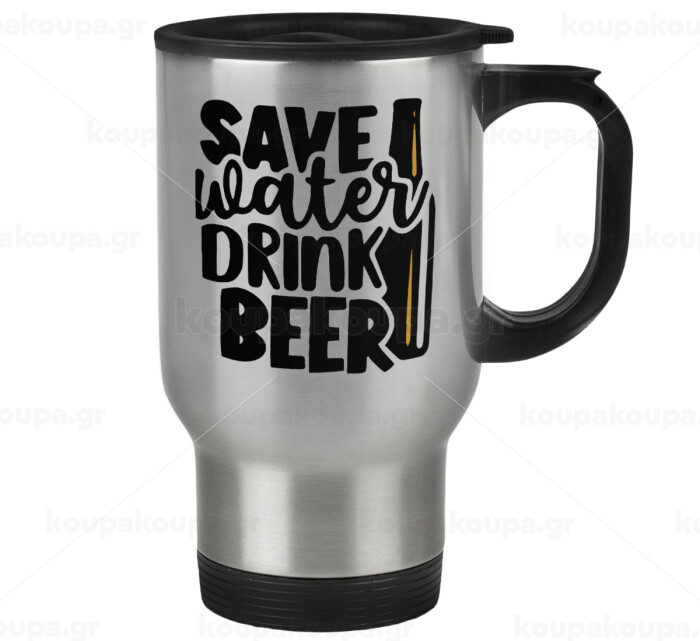 Save Water, Drink BEER, Stainless steel travel mug with lid, double wall 450ml