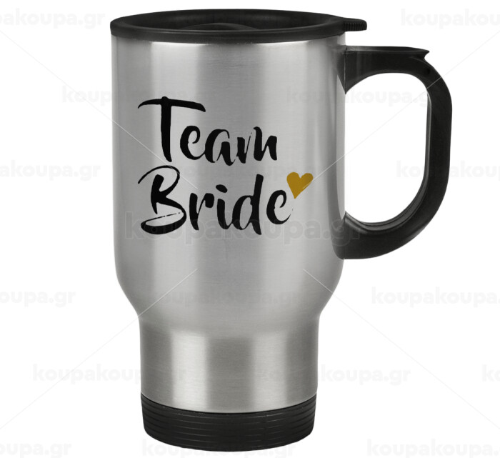 Team Bride, Stainless steel travel mug with lid, double wall 450ml