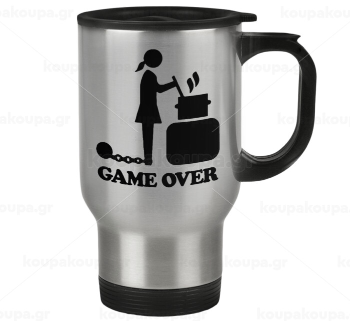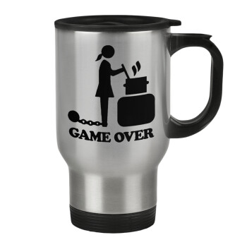 Woman Game Over, Stainless steel travel mug with lid, double wall 450ml