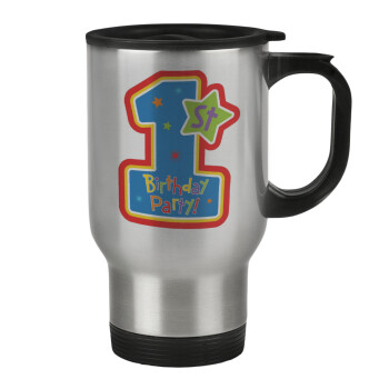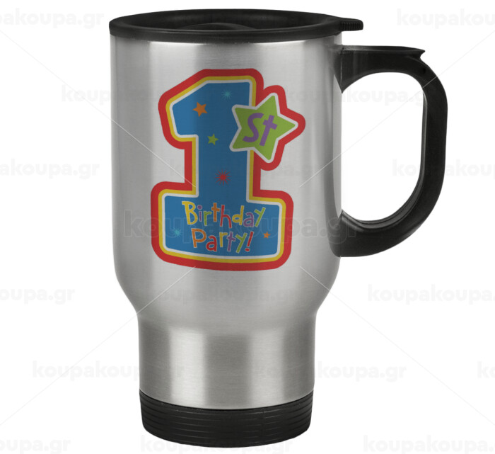 Happy 1st Birthday, Stainless steel travel mug with lid, double wall 450ml