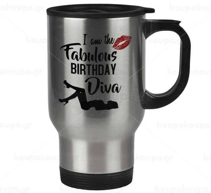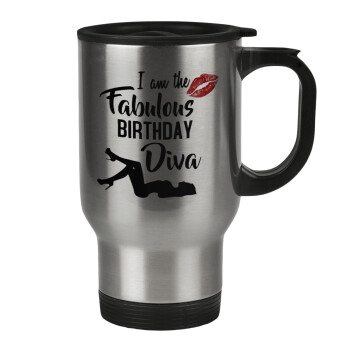 I am the fabulous Birthday Diva, Stainless steel travel mug with lid, double wall 450ml