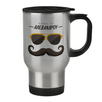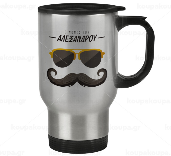 Ο νονός μου, μουστάκι με γυαλιά, Stainless steel travel mug with lid, double wall 450ml