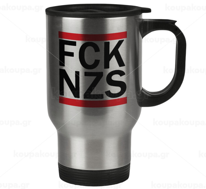FCK NZS, Stainless steel travel mug with lid, double wall 450ml