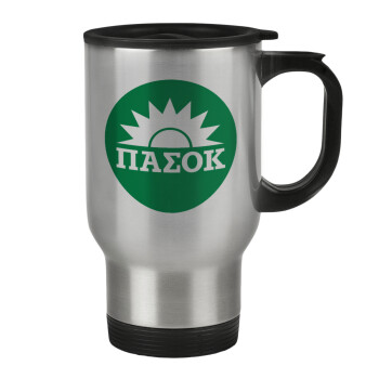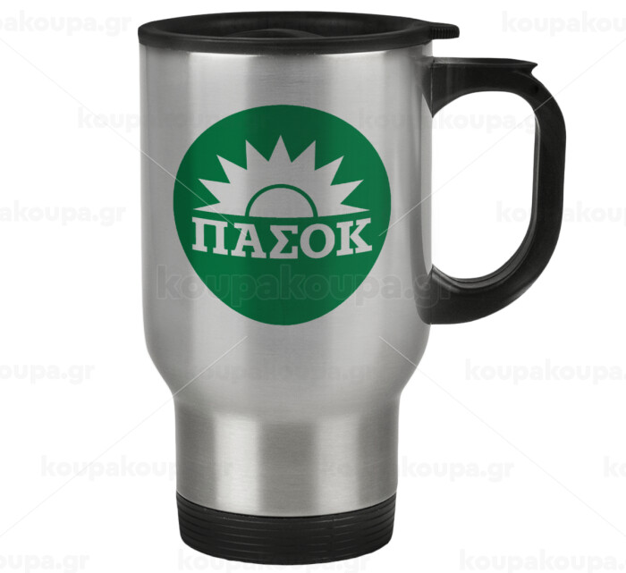 PASOK Green/White, Stainless steel travel mug with lid, double wall 450ml