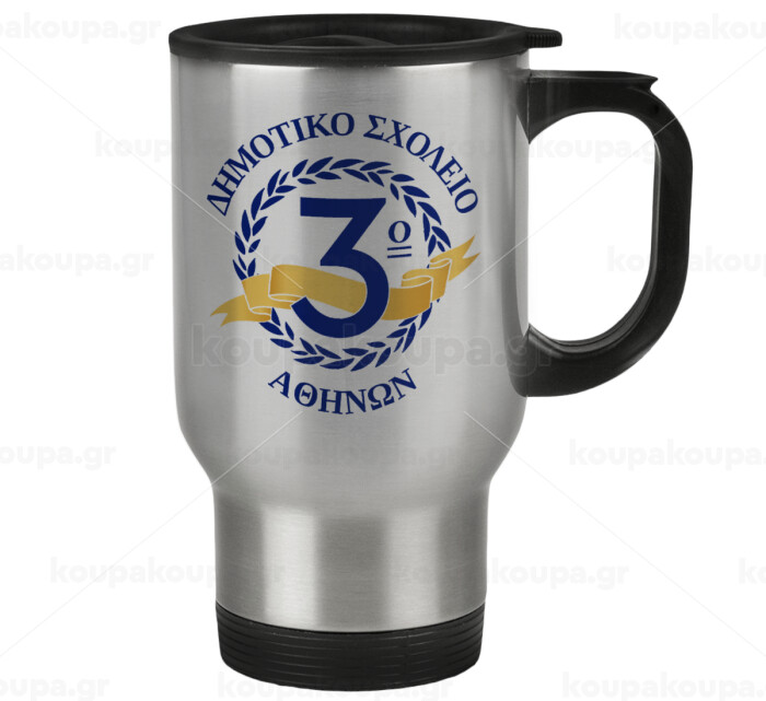 Έμβλημα Σχολικό μπλε, Stainless steel travel mug with lid, double wall 450ml