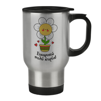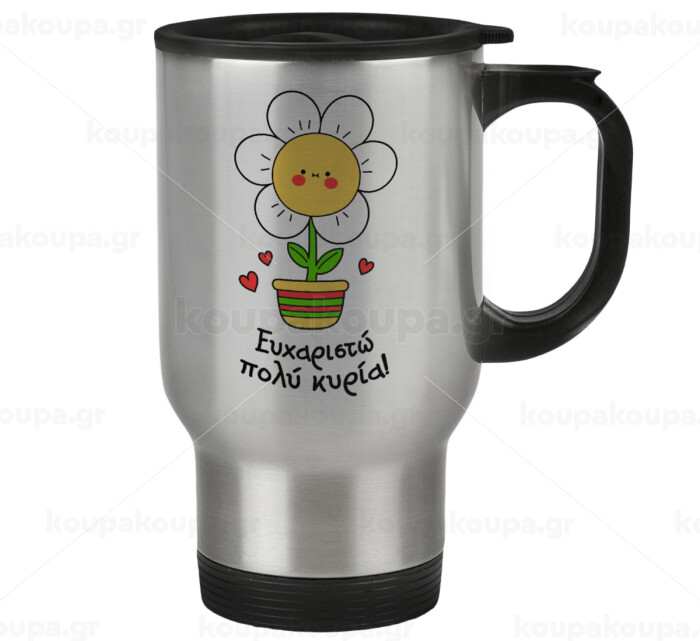 Ευχαριστώ πολύ κυρία!!!, Stainless steel travel mug with lid, double wall 450ml