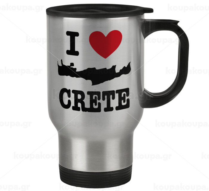 I Love Crete, Stainless steel travel mug with lid, double wall 450ml