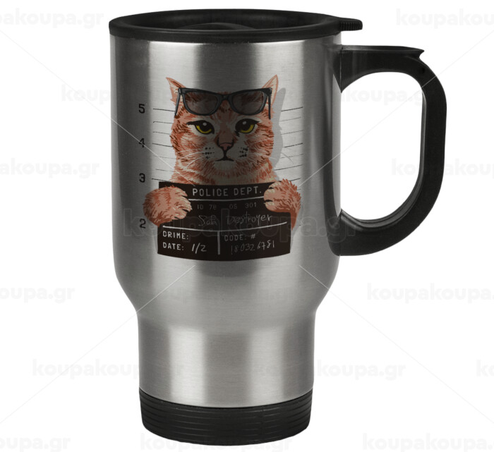 Cool cat, Stainless steel travel mug with lid, double wall 450ml